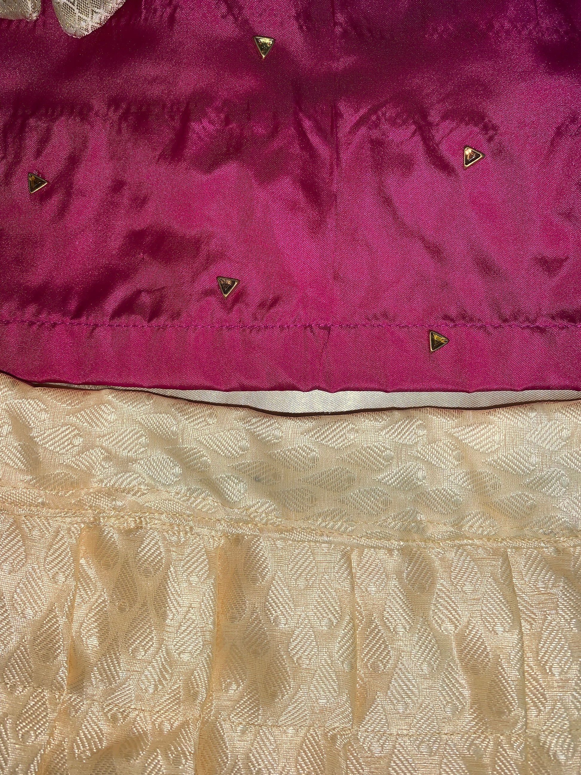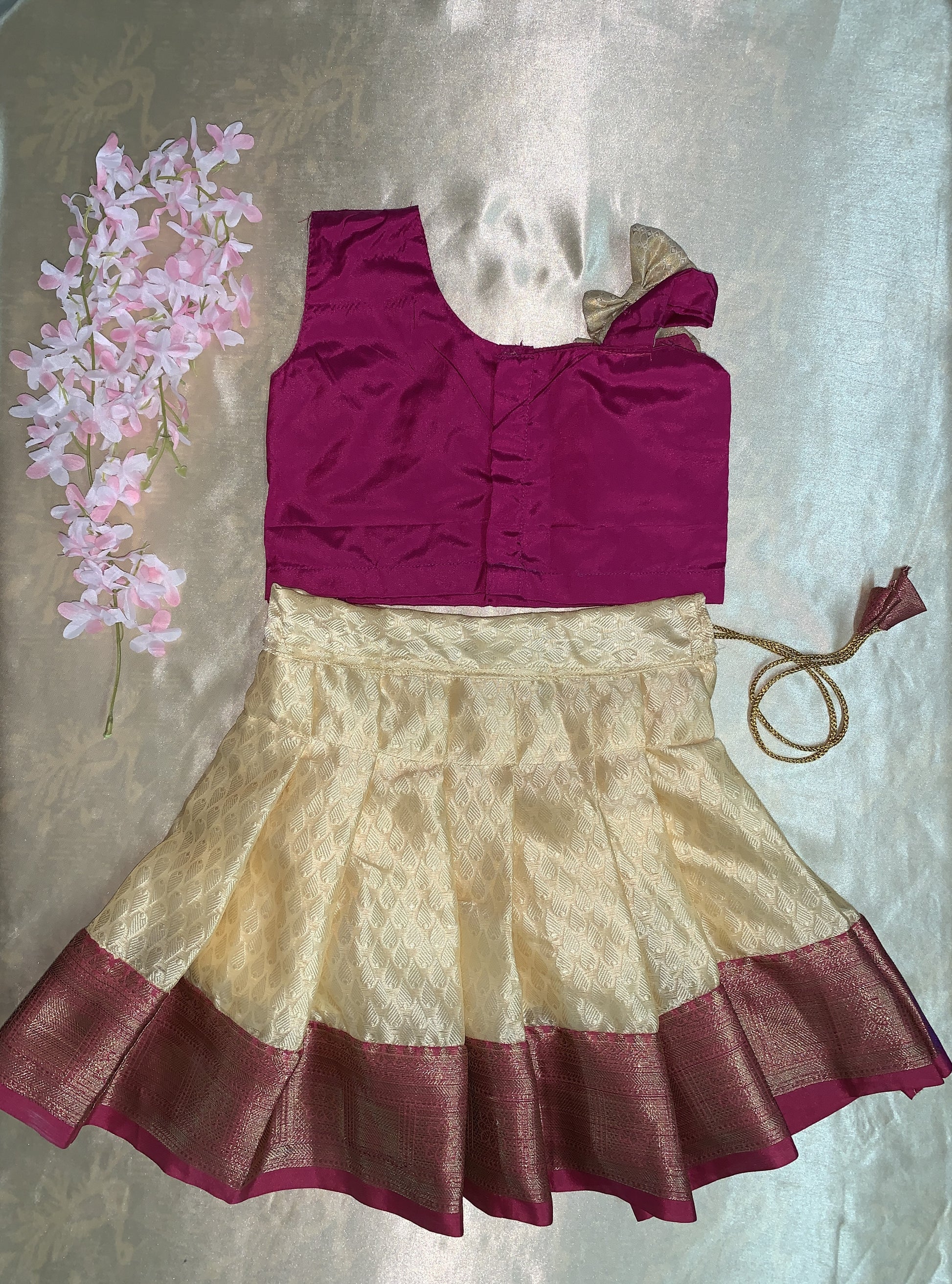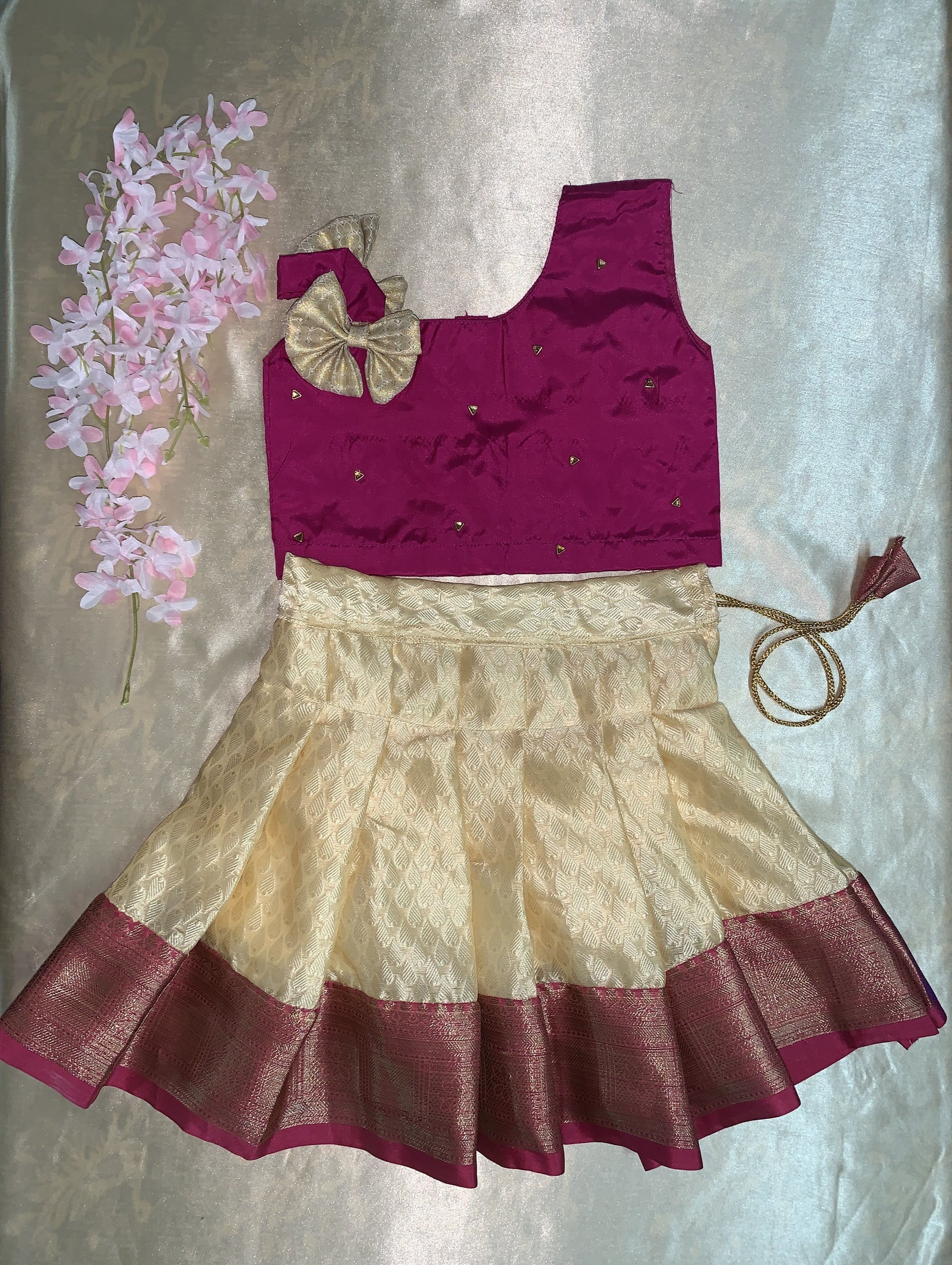 Experience the comfort and elegance of Pattu Paavadai, making it a must-have for any special occasion. This can also be styled as crop top, Fashion with a modern twist. Our products are made with quality materials and traditional designs, this Pattu Paavadai is sure to be a staple in your kids wardrobe.