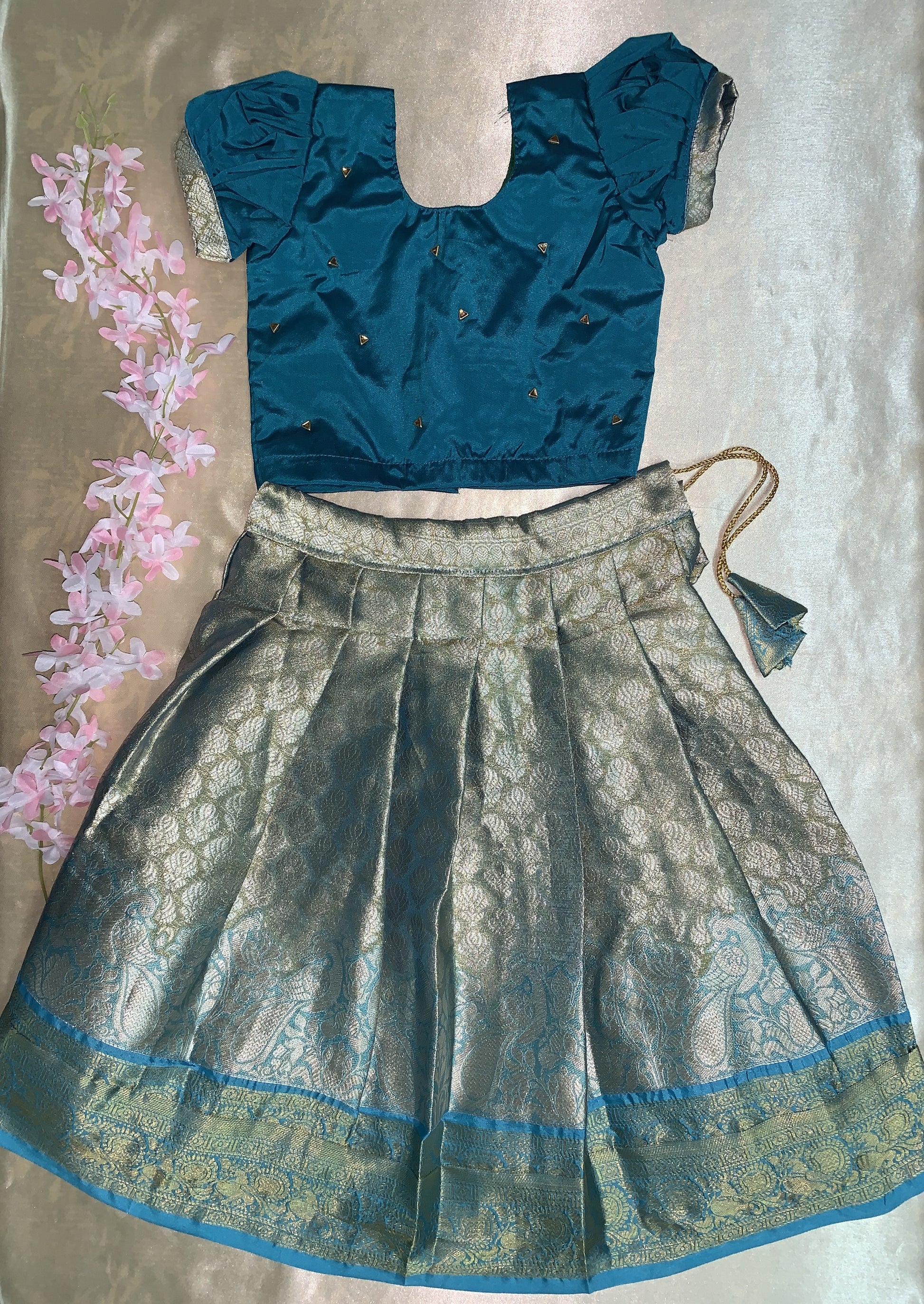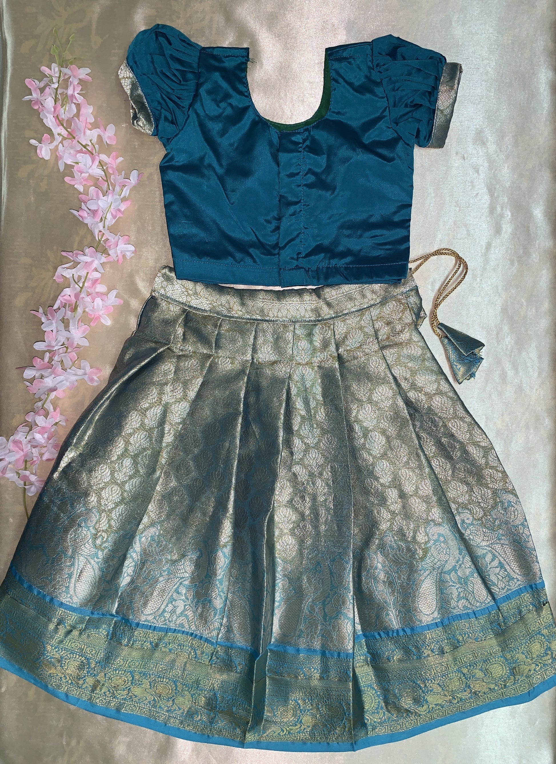 Experience the comfort and elegance of Pattu Paavadai, making it a must-have for any special occasion. This can also be styled as crop top, Fashion with a modern twist. Our products are made with quality materials and traditional designs, this Pattu Paavadai is sure to be a staple in your kids wardrobe.
