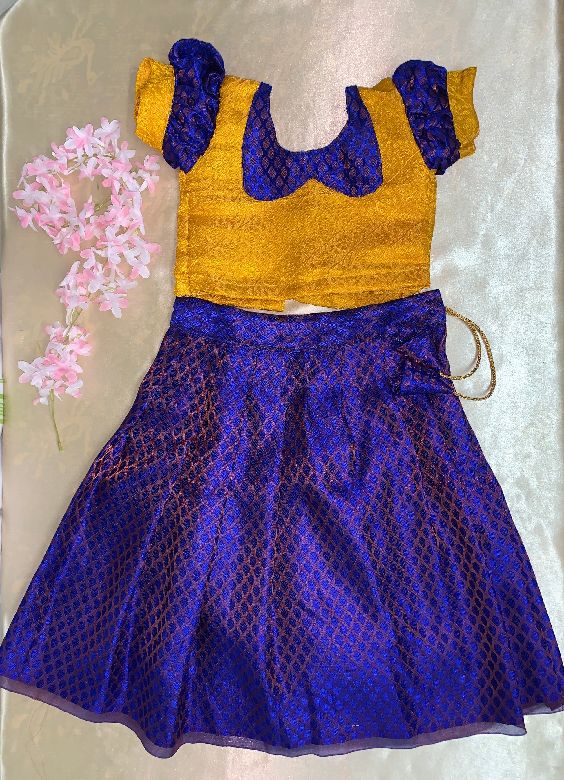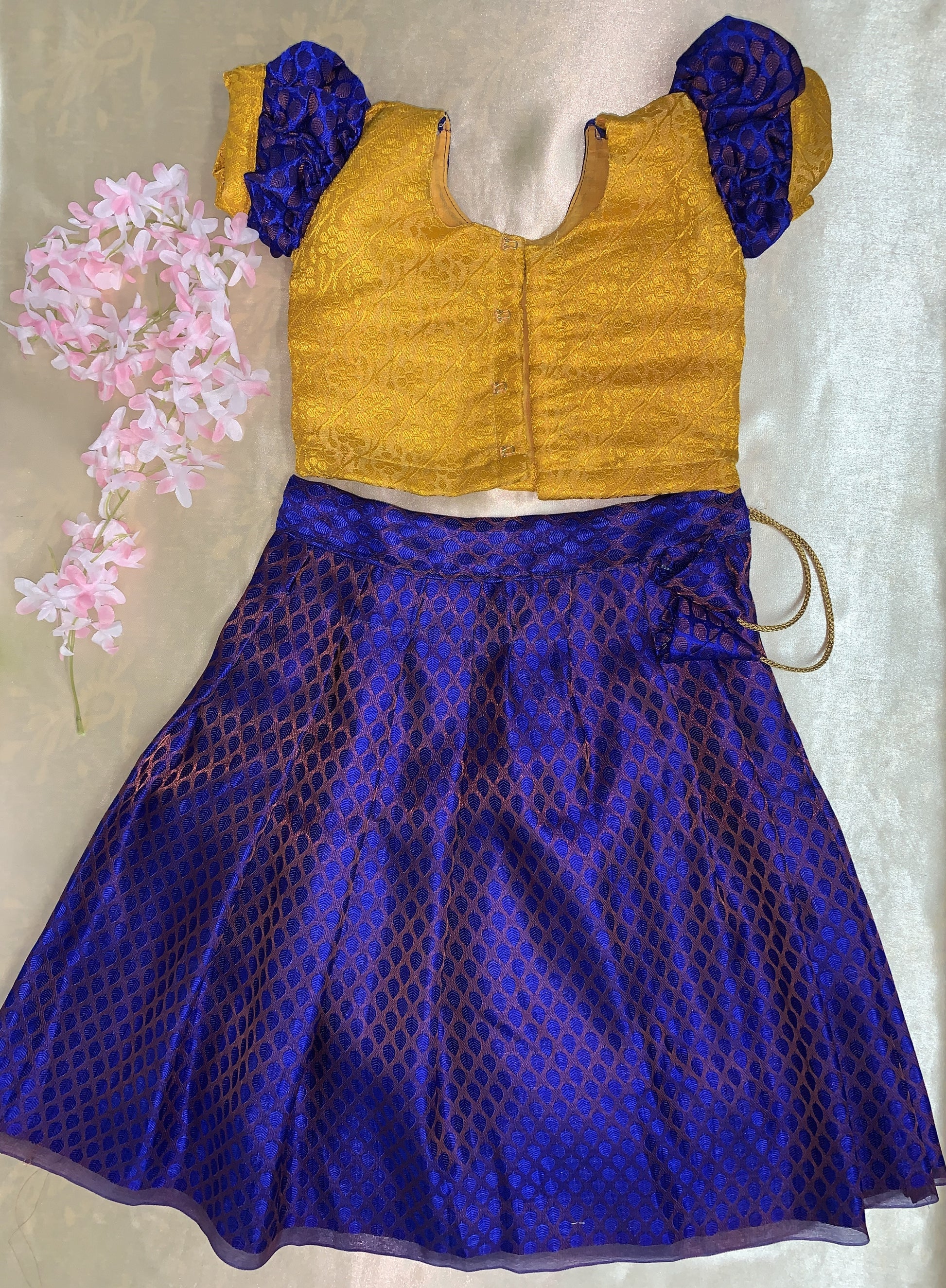 Experience the comfort and elegance of Pattu Paavadai, making it a must-have for any special occasion. This can also be styled as crop top, Fashion with a modern twist. Our products are made with quality materials and traditional designs, this Pattu Paavadai is sure to be a staple in your kids wardrobe.