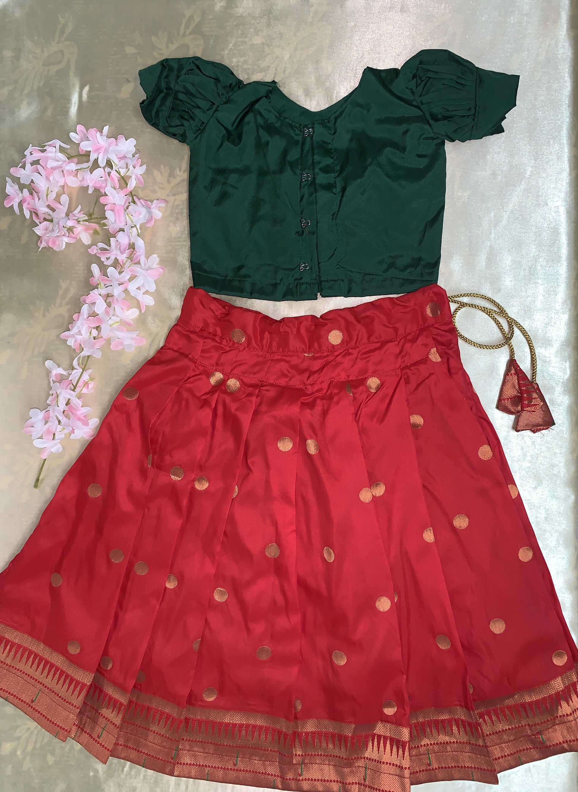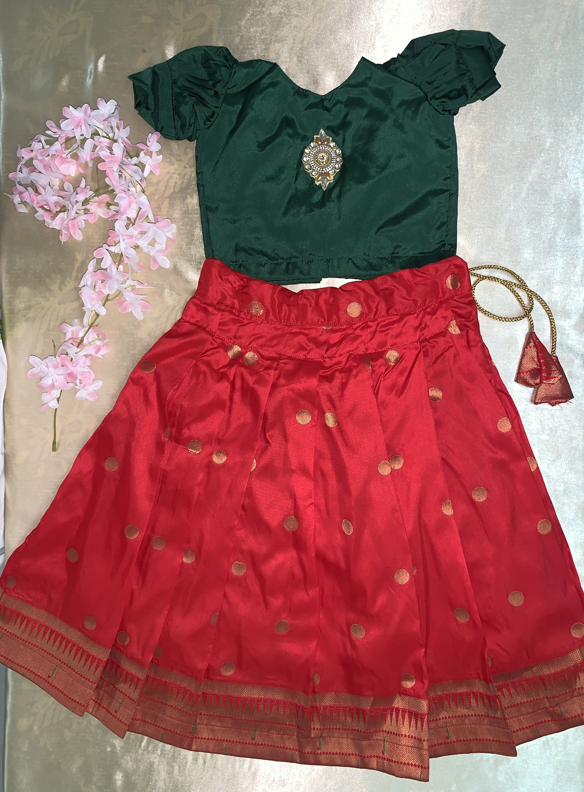 Experience the comfort and elegance of Pattu Paavadai, making it a must-have for any special occasion. This can also be styled as crop top, Fashion with a modern twist. Our products are made with quality materials and traditional designs, this Pattu Paavadai is sure to be a staple in your kids wardrobe.