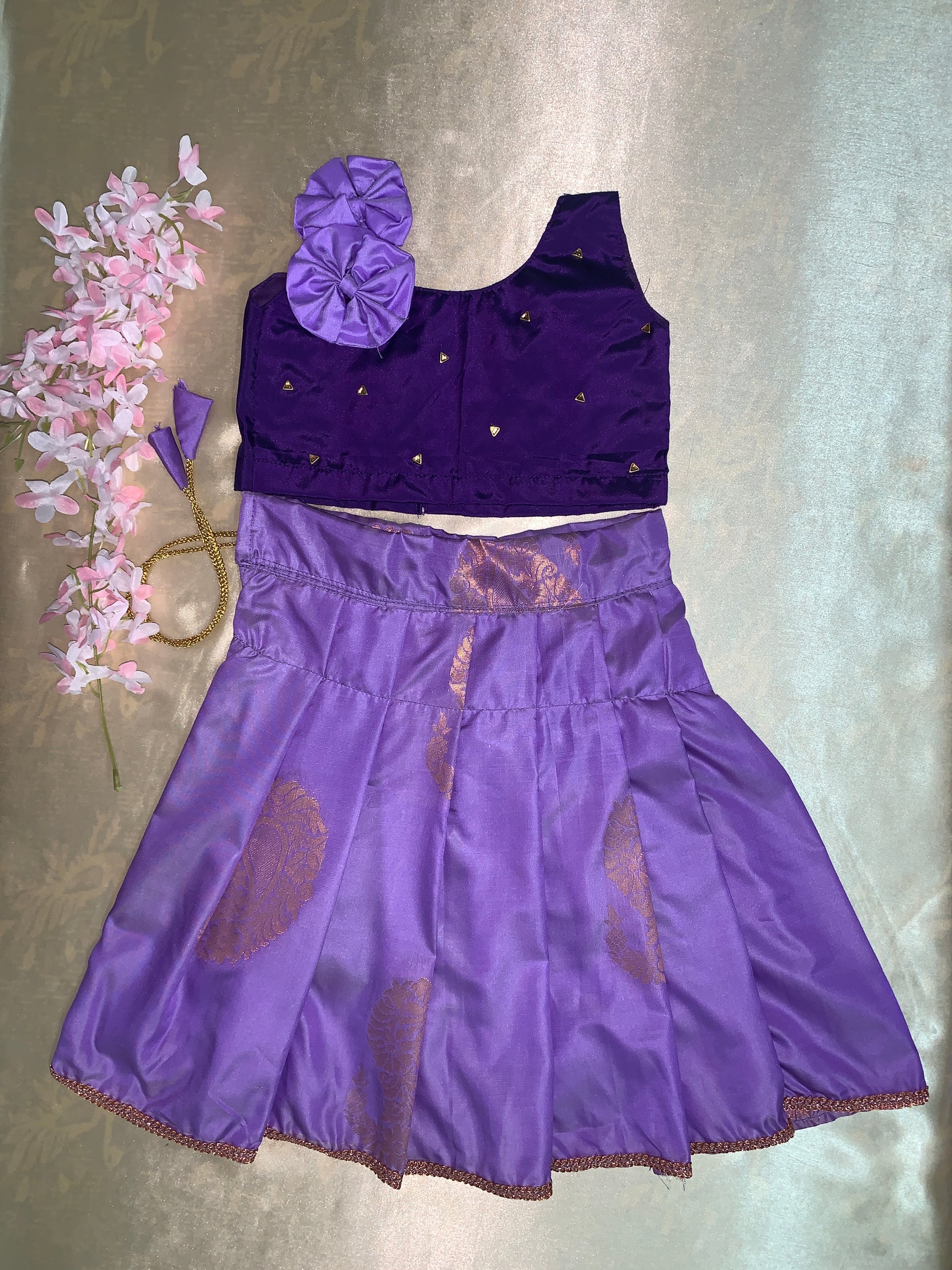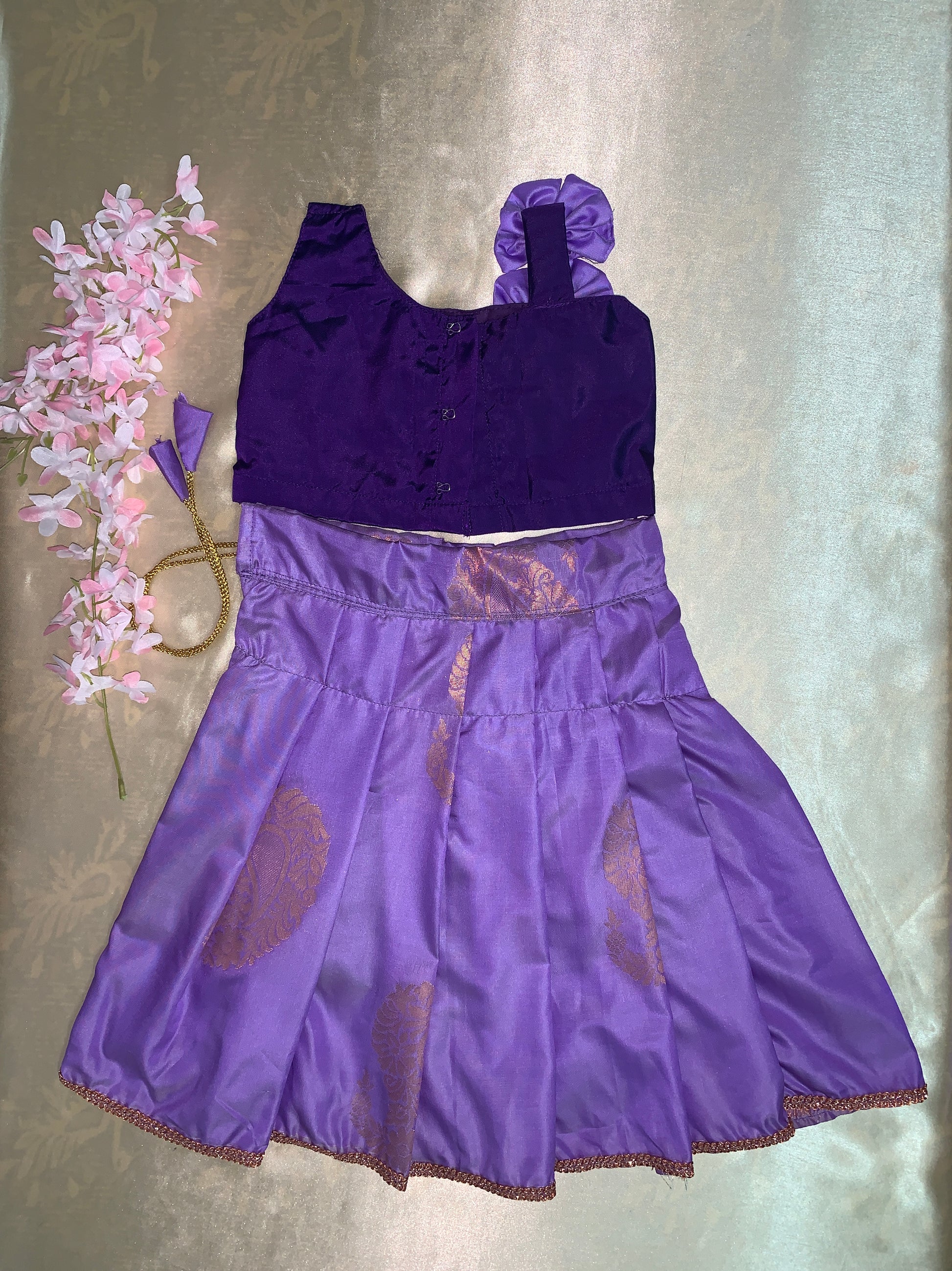 Experience the comfort and elegance of Pattu Paavadai, making it a must-have for any special occasion. This can also be styled as crop top, Fashion with a modern twist. Our products are made with quality materials and traditional designs, this Pattu Paavadai is sure to be a staple in your kids wardrobe.