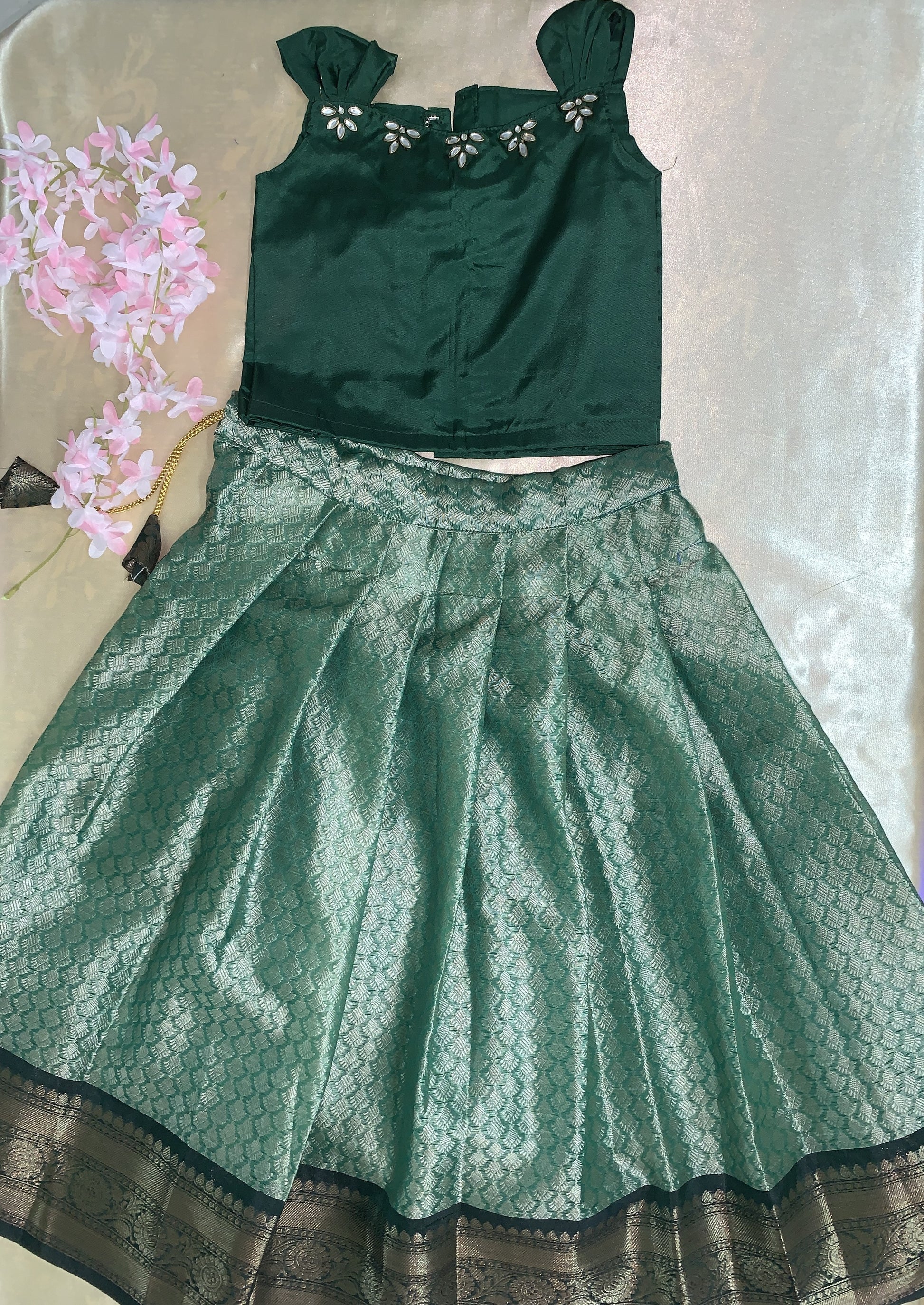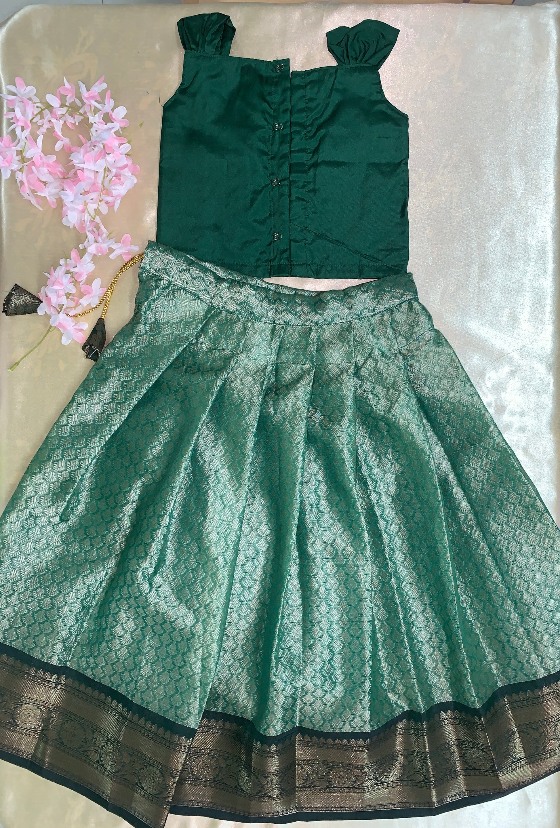 The perfect blend of cotton and silk in a traditional Pattu Paavadai. Experience the comfort and elegance of this product, making it a must-have for any special occasion. Made with quality materials and traditional designs, this Pattu Paavadai is sure to be a staple in your kids wardrobe.