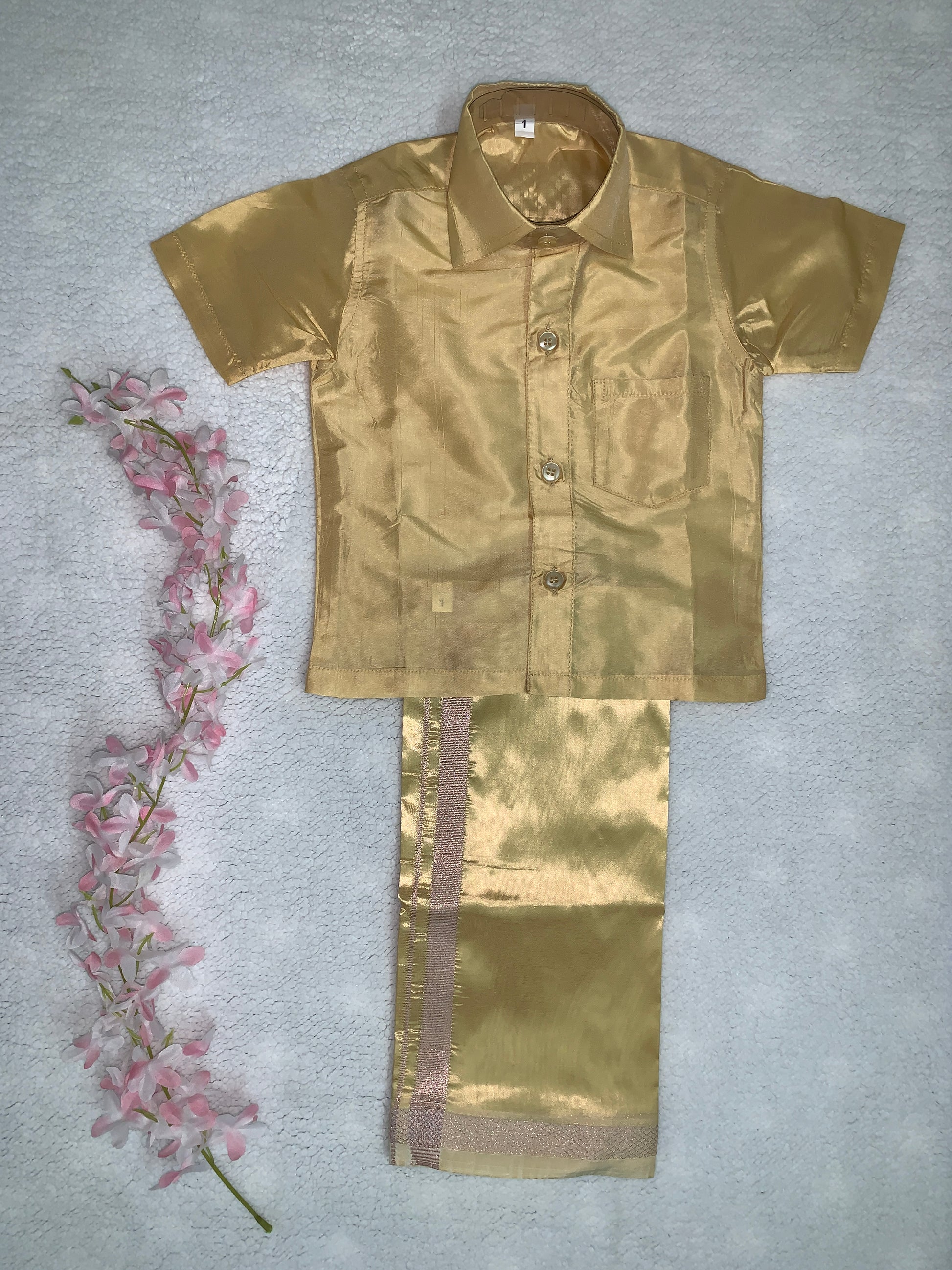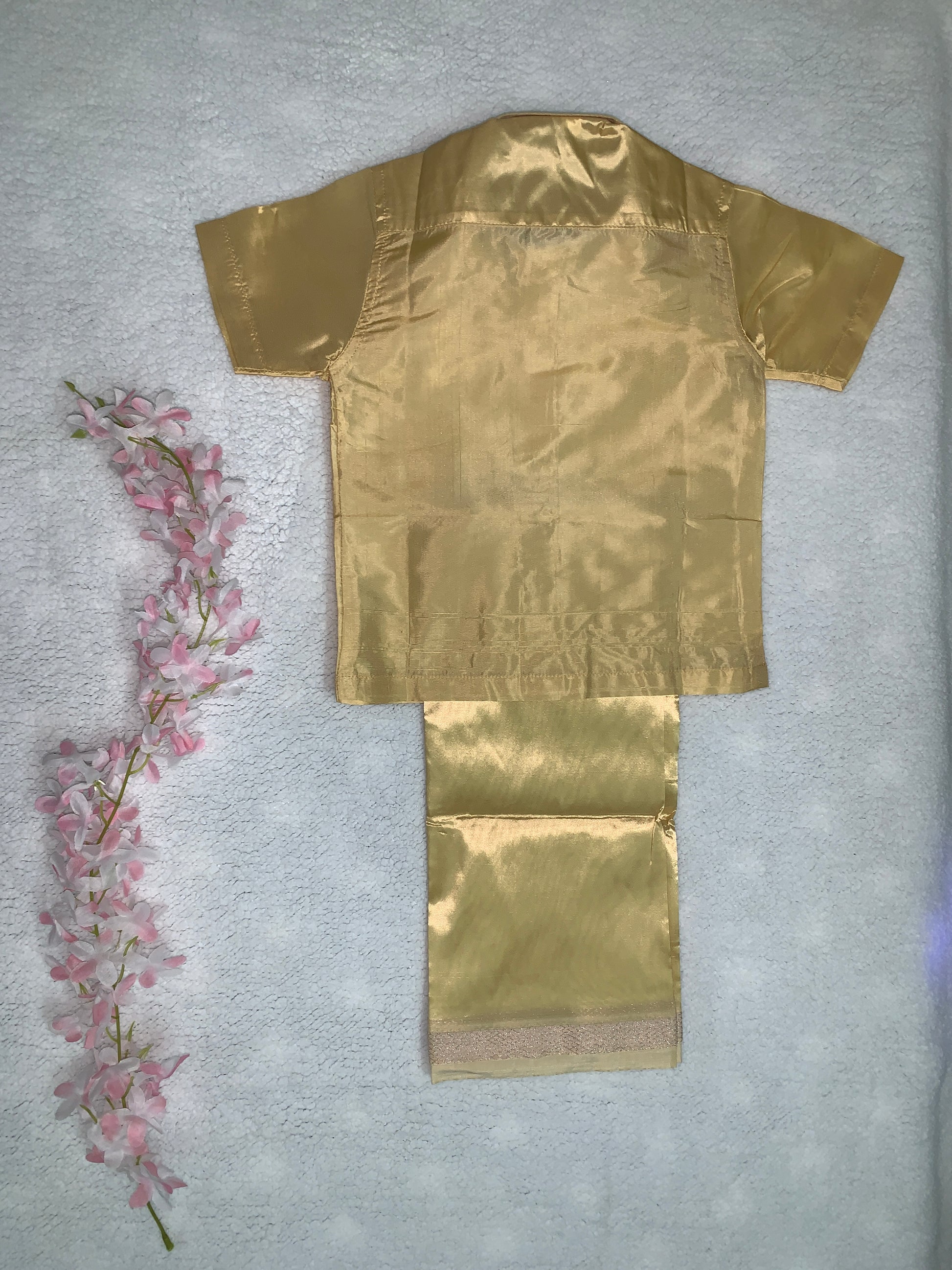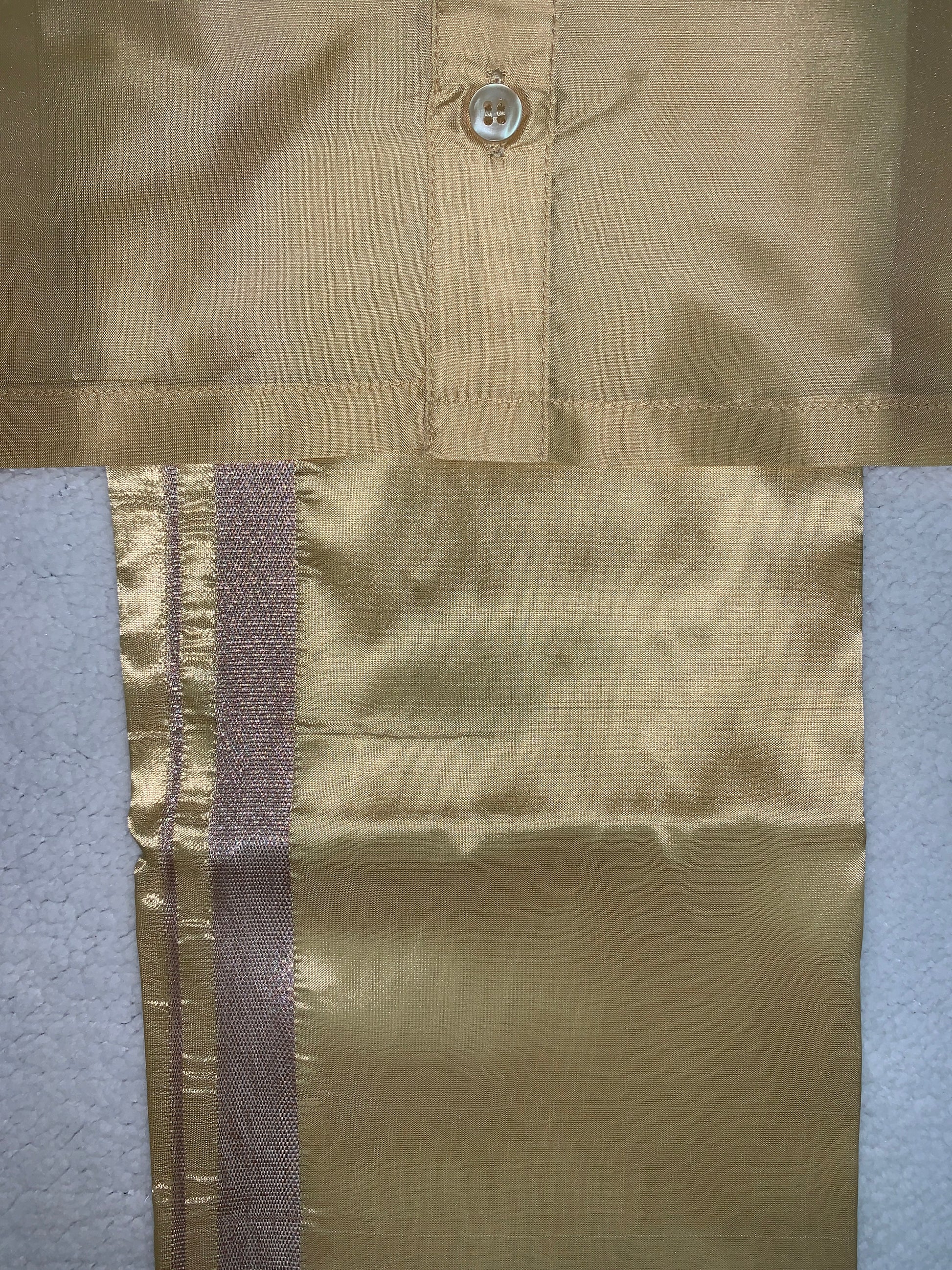 Designed for ultimate comfort and convenience, this features a luxurious silk Velcro Dhoti & Shirt for effortless wear. With its soft fabric and secure fastening, this Dhoti provides both style and practicality. Perfect for any occasion, elevate your wardrobe with this must-have piece.