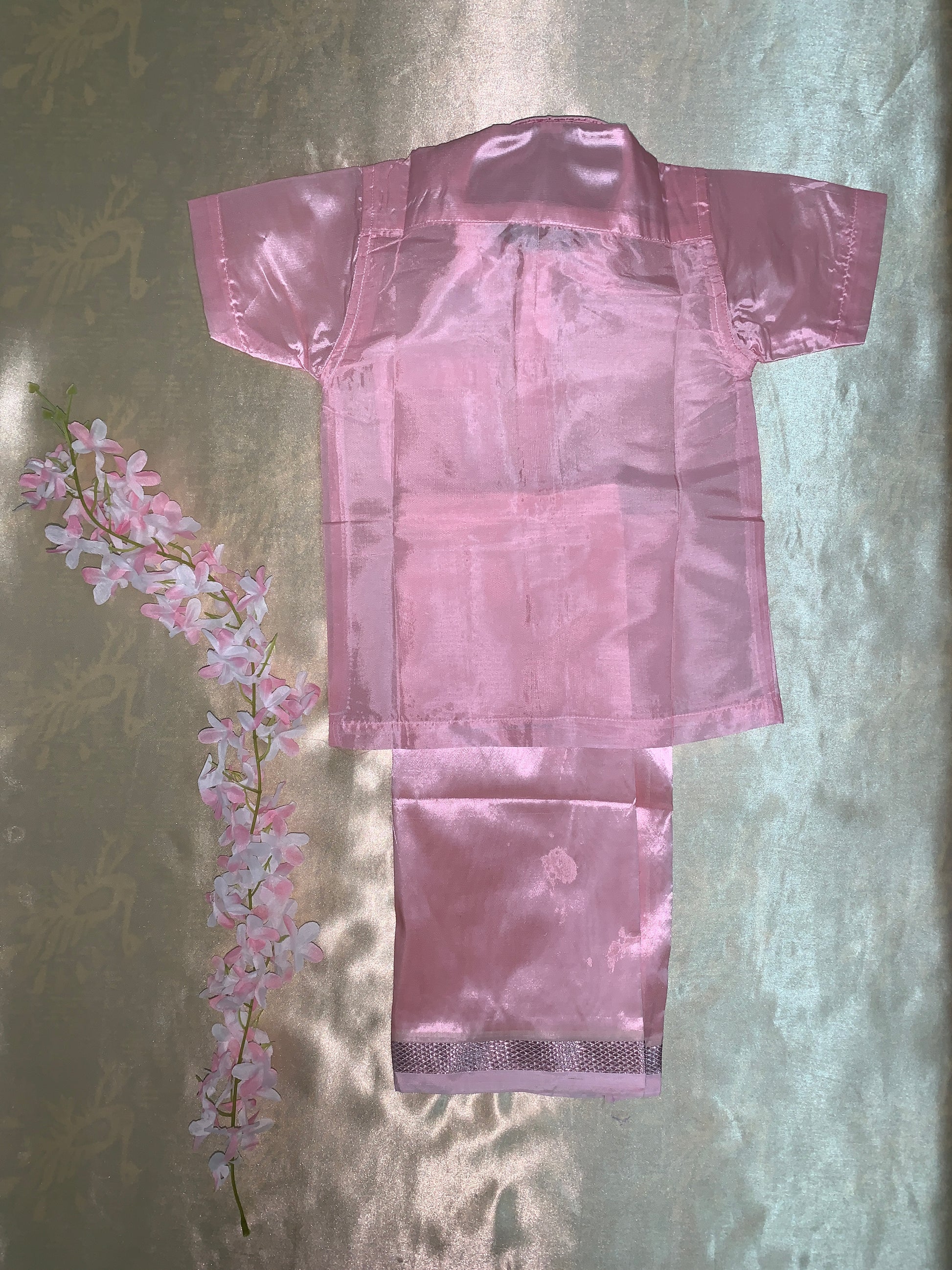 Designed for ultimate comfort and convenience, this features a luxurious silk Velcro Dhoti & Shirt for effortless wear. With its soft fabric and secure fastening, this Dhoti provides both style and practicality. Perfect for any occasion, elevate your wardrobe with this must-have piece.