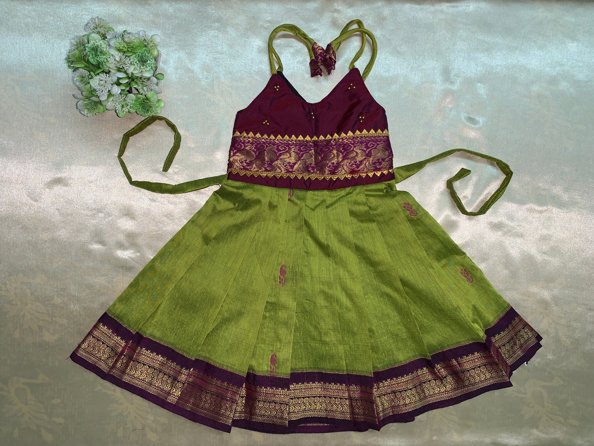 The perfect blend of cotton and silk in a traditional Pattu frock. Experience the comfort and elegance of this product, making it a must-have for any special occasion. Made with quality materials and traditional designs, this Pattu Frock is sure to be a staple in your kids wardrobe.