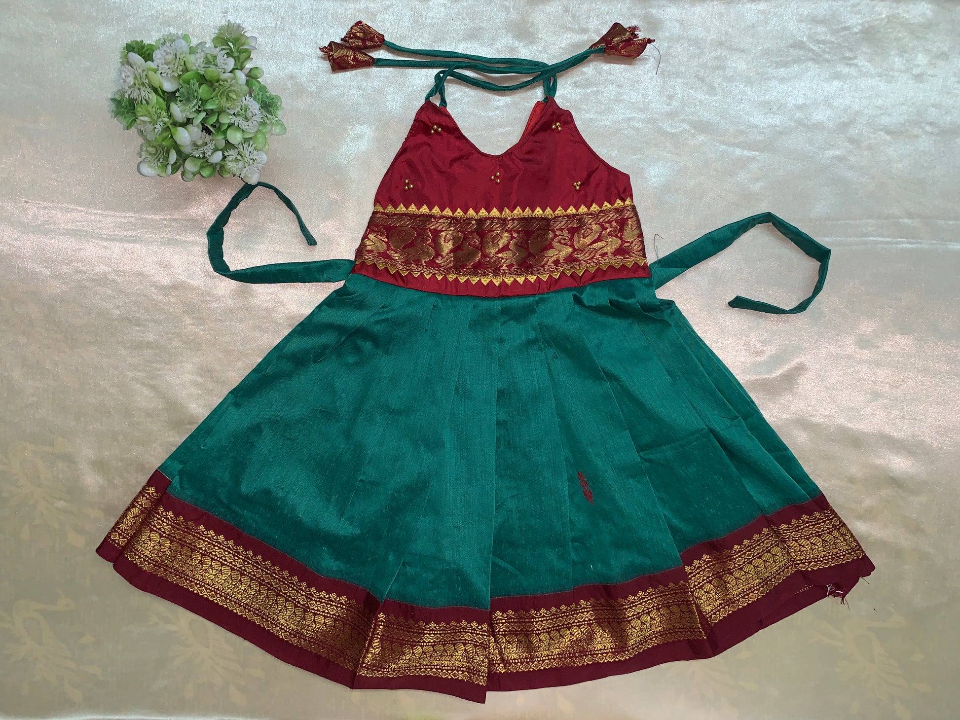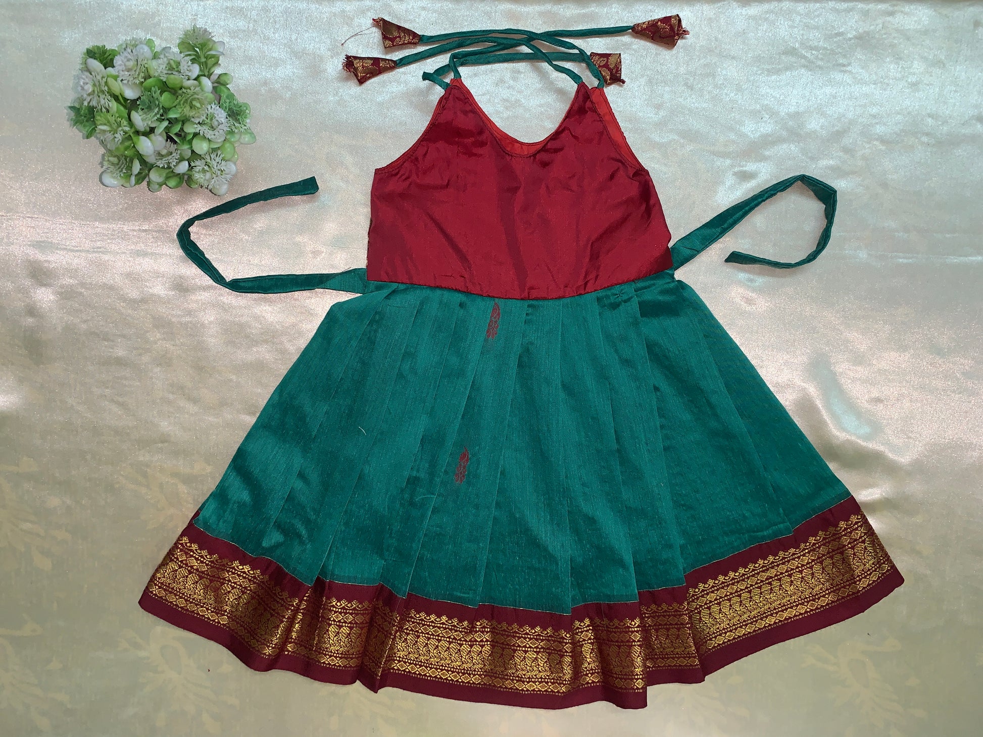 The perfect blend of cotton and silk in a traditional Pattu frock. Experience the comfort and elegance of this product, making it a must-have for any special occasion. Made with quality materials and traditional designs, this Pattu Frock is sure to be a staple in your kids wardrobe.